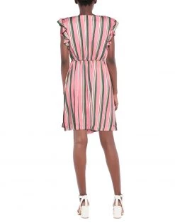 satin, ruffles, stripes, v-neck, sleeveless, unlined, 2 buttons