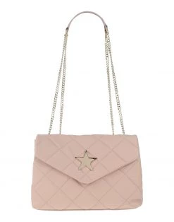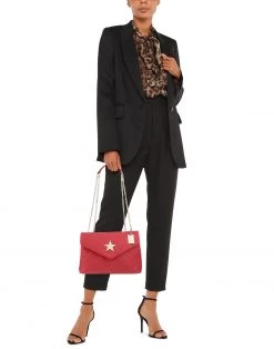 large, leather, quilted, metal applications, brand logo, solid colour with appliquΓ©s, fully lined, magnetic fastening, internal zip pocket, external pockets, dual straps, metallic straps, daytime, contains non-textile parts of animal origin