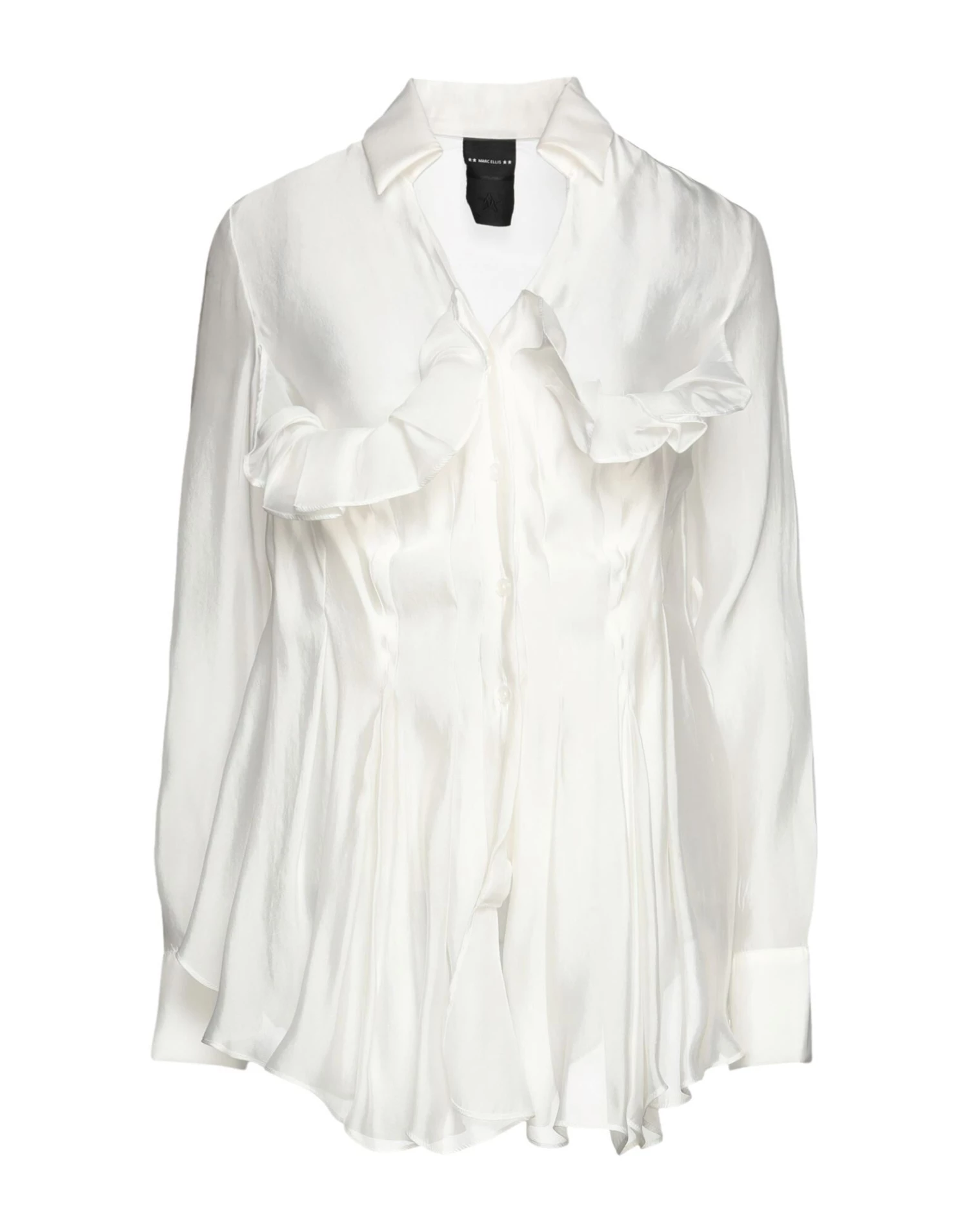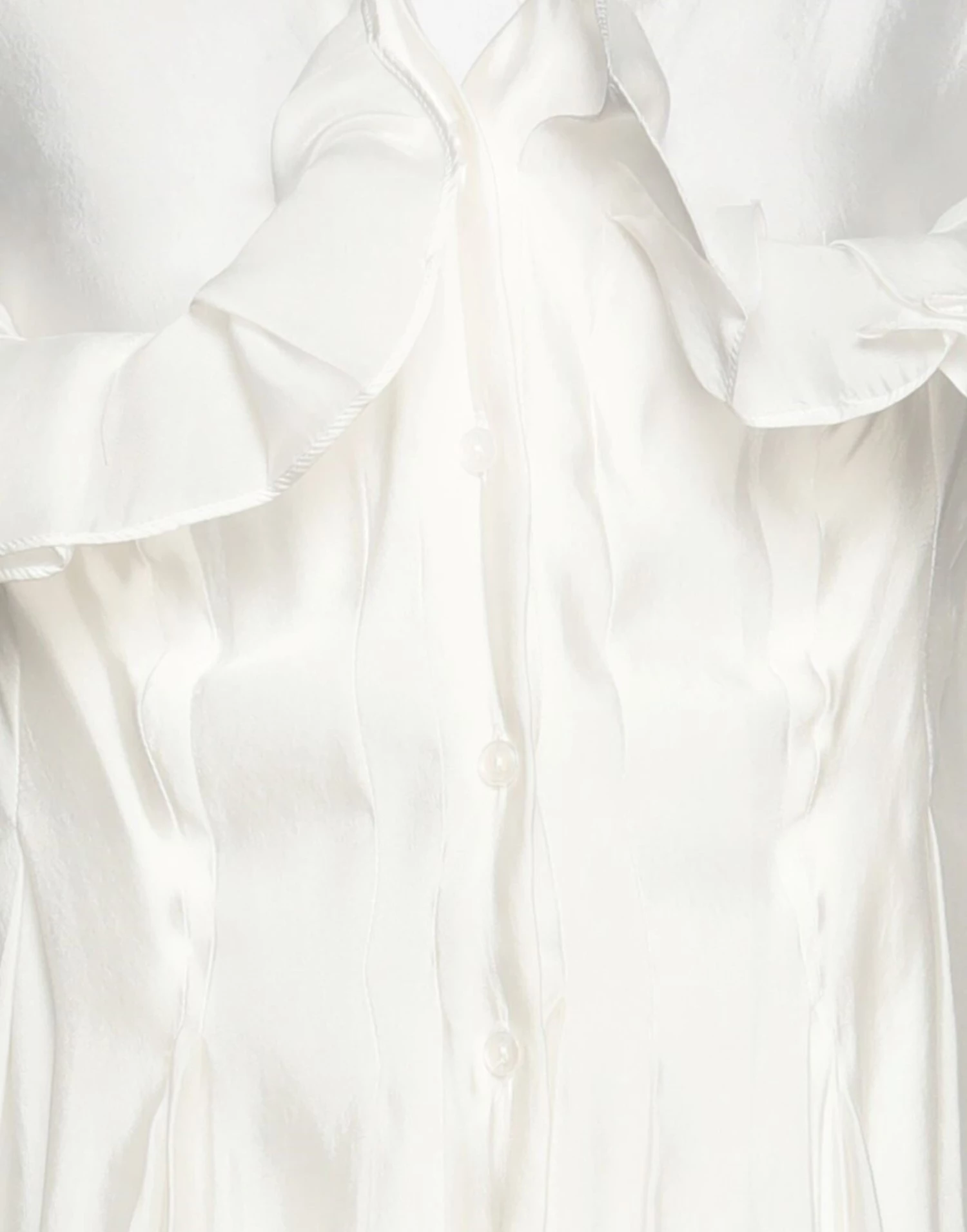 no appliqués, solid color, v-neck, long sleeves, button closing, no pockets, satin