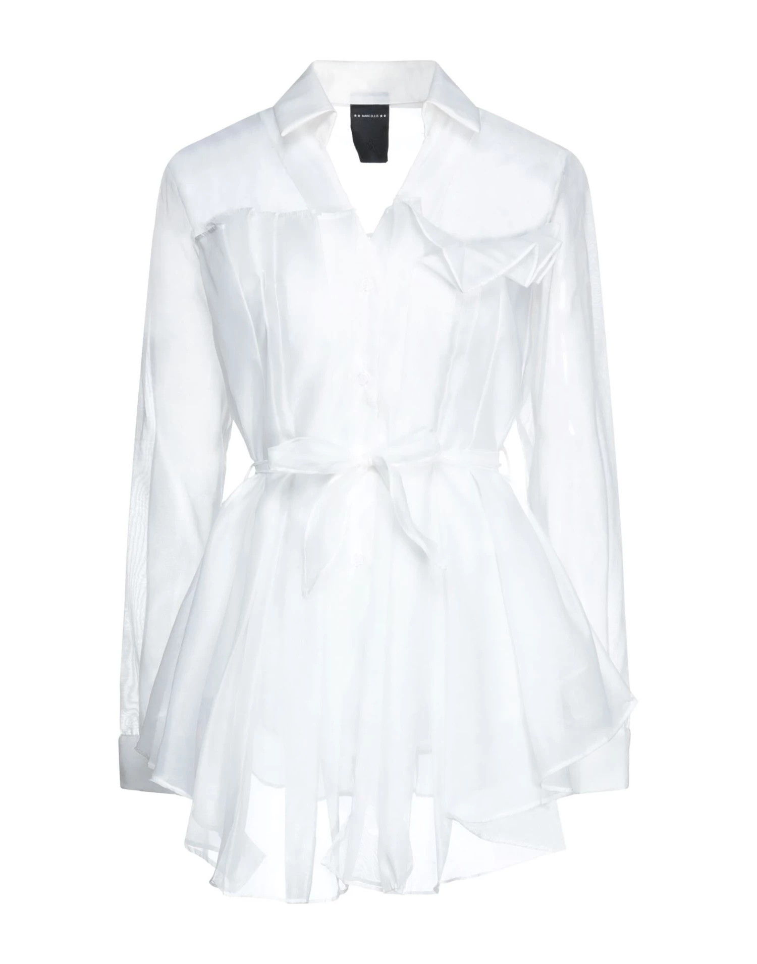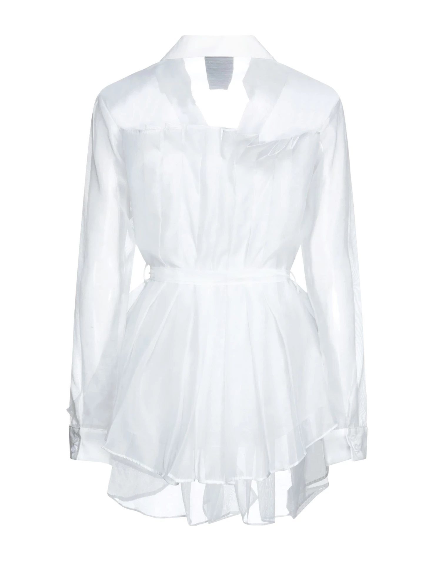 organza, belt, folds, solid color, classic neckline, long sleeves, buttoned cuffs, button closing, no pockets