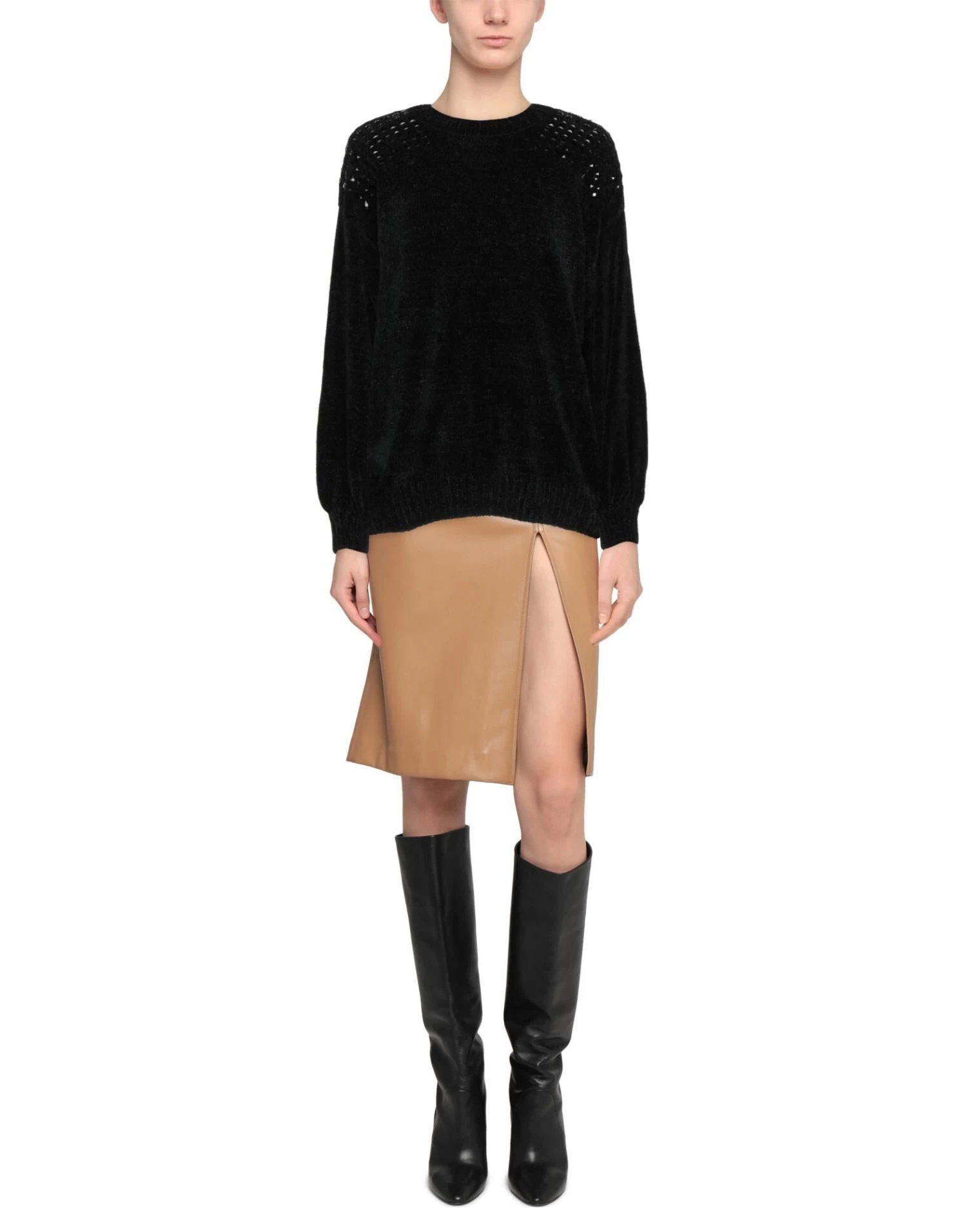 knitted, studs, solid colour with appliqués, round collar, long sleeves, no pockets, lightweight knit