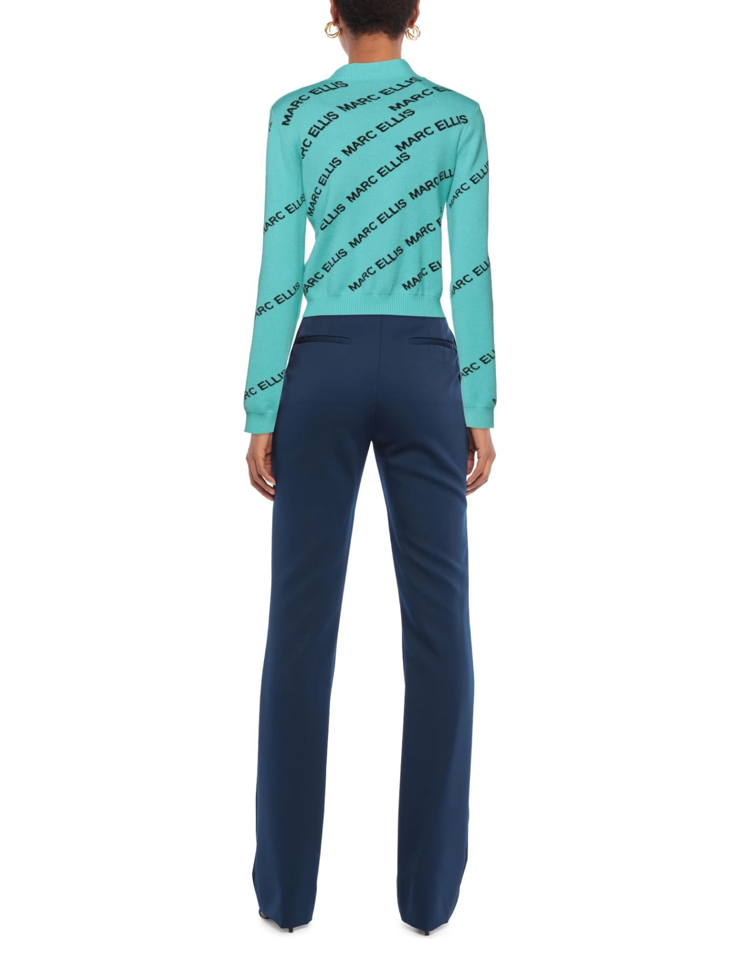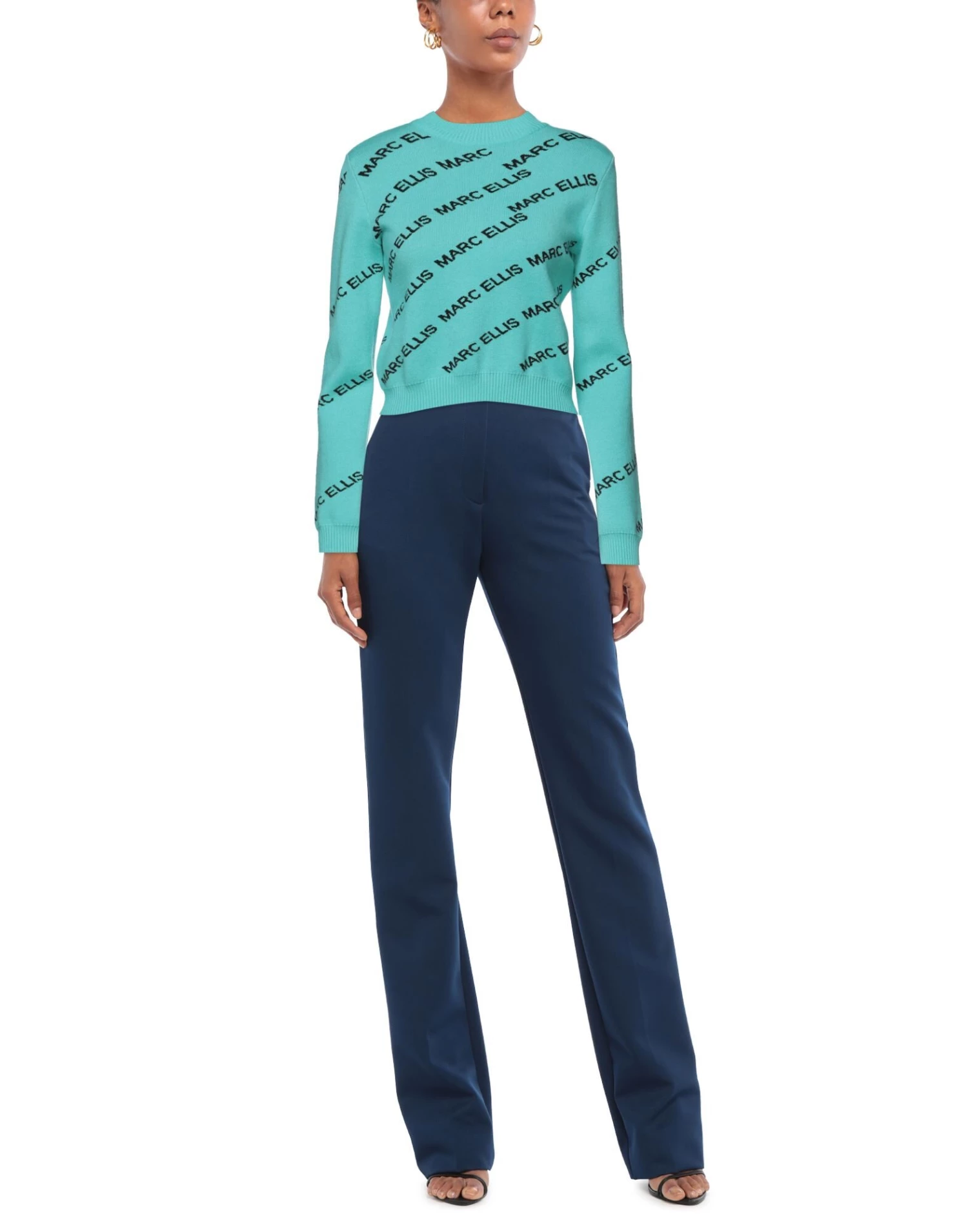 jacquard, knitted, no appliquΓ©s, logo design, medium-weight knit, round collar, long sleeves, no pockets