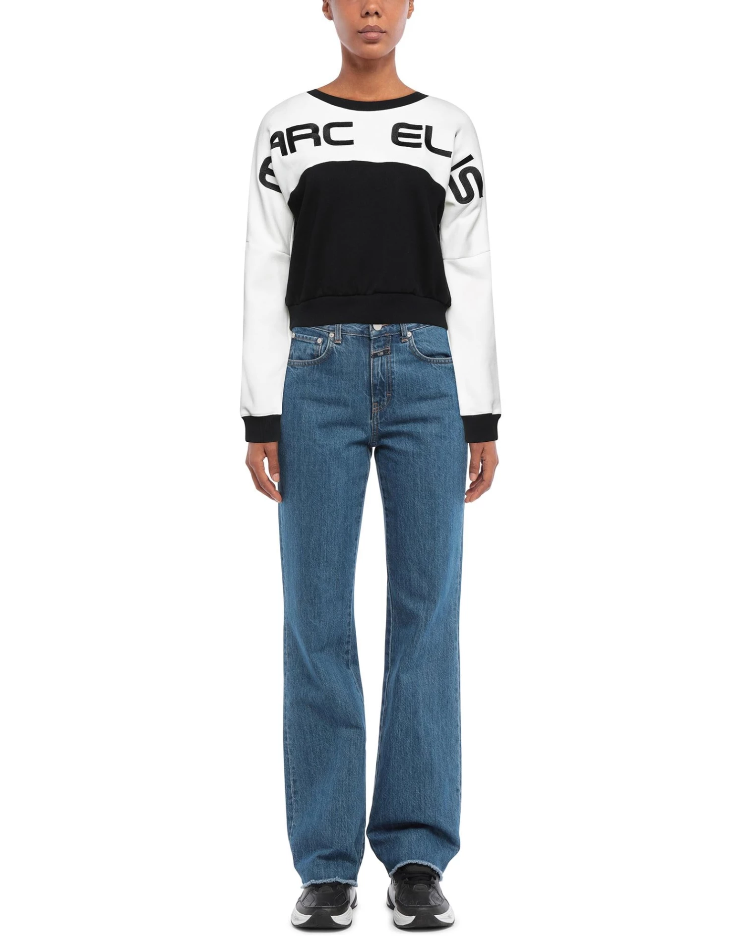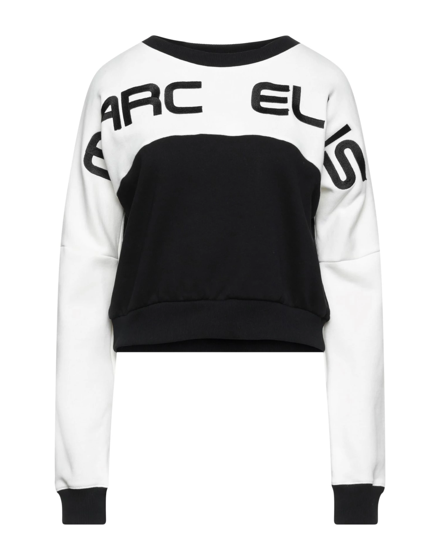 sweatshirt fleece, embroidered detailing, brand logo, two-tone, round collar, long sleeves, fleece lining, no pockets