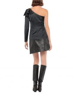 satin, rhinestones, bow-detailed, deep neckline, one-shoulder, no pockets, solid colour with appliqués, stretch