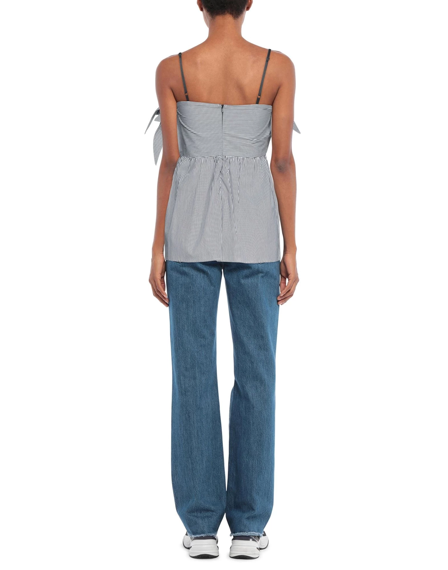 plain weave, bow-detailed, stripes, square neckline, sleeveless, zipper closure, no pockets