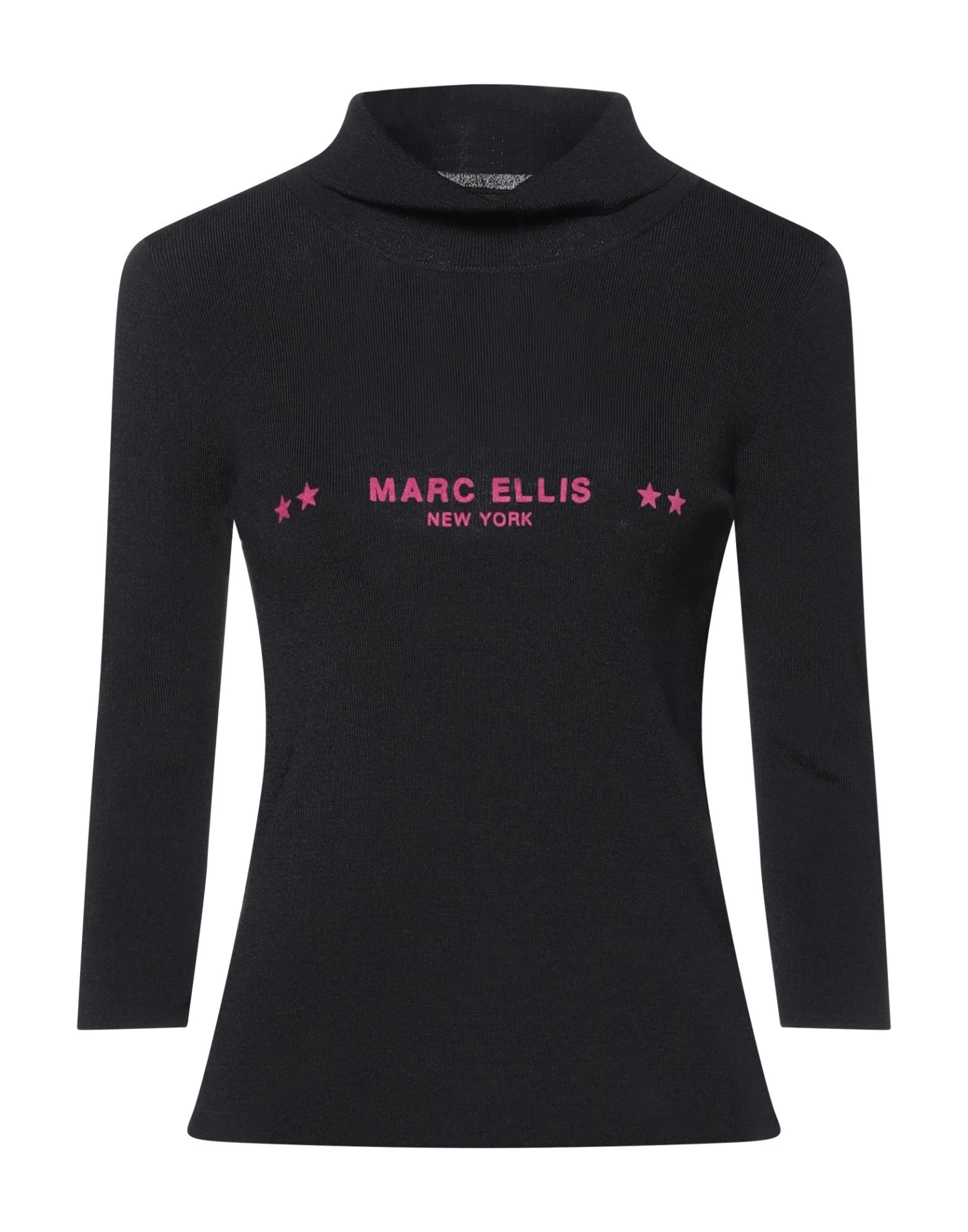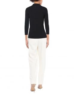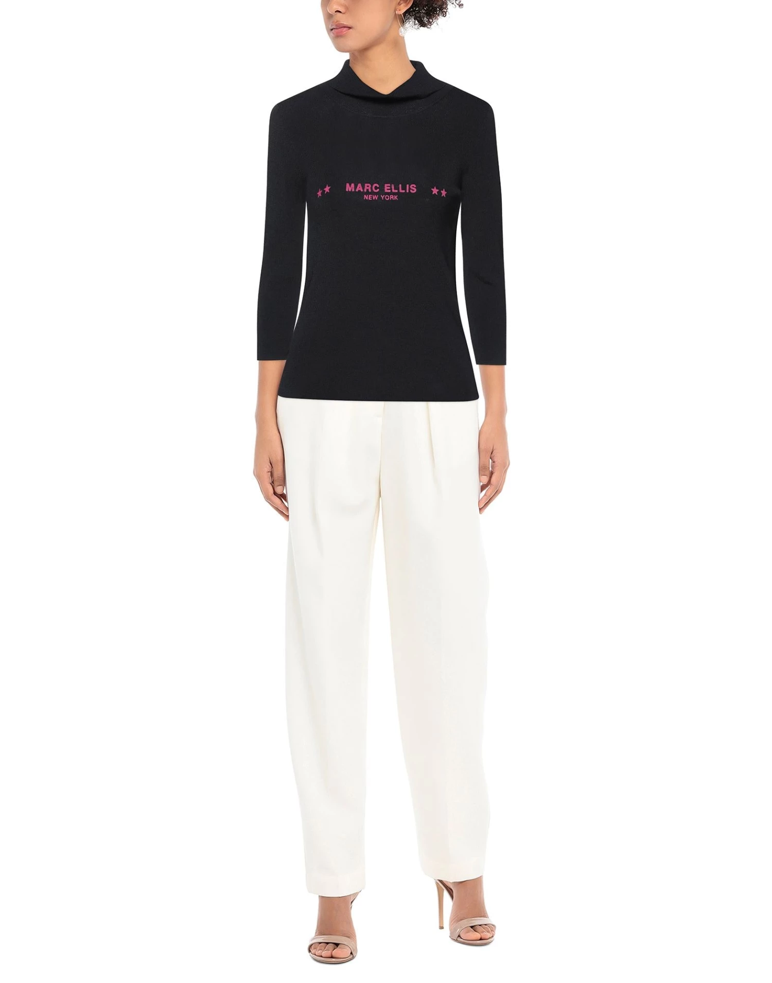 knitted, lightweight knit, brand logo, solid color with print, turtleneck, 3/4 length sleeves, no pockets