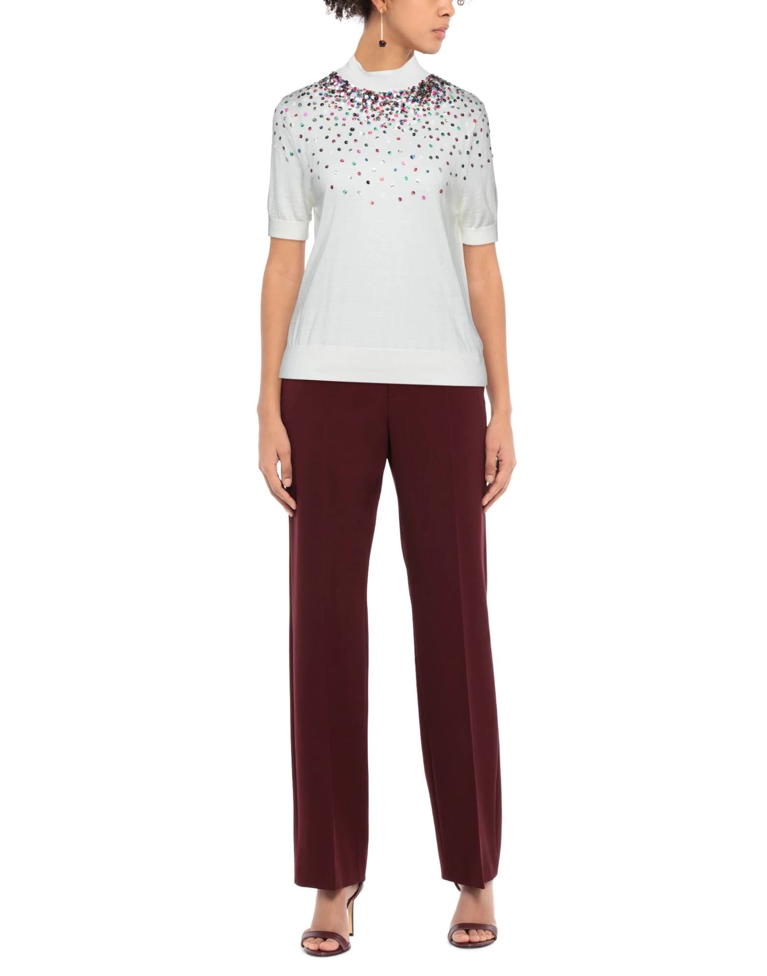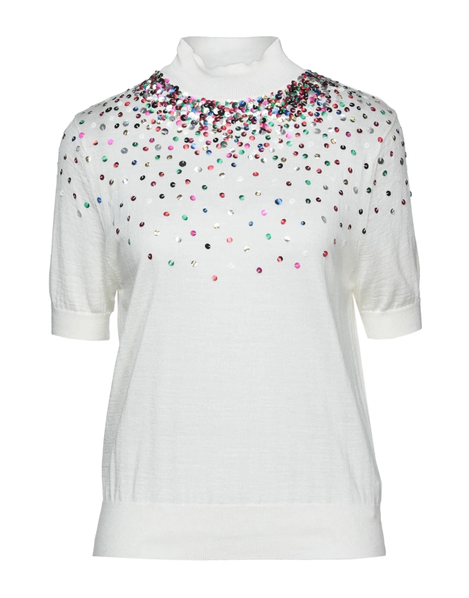knitted, lightweight knit, sequins, solid colour with appliquΓ©s, turtleneck, short sleeves, no pockets